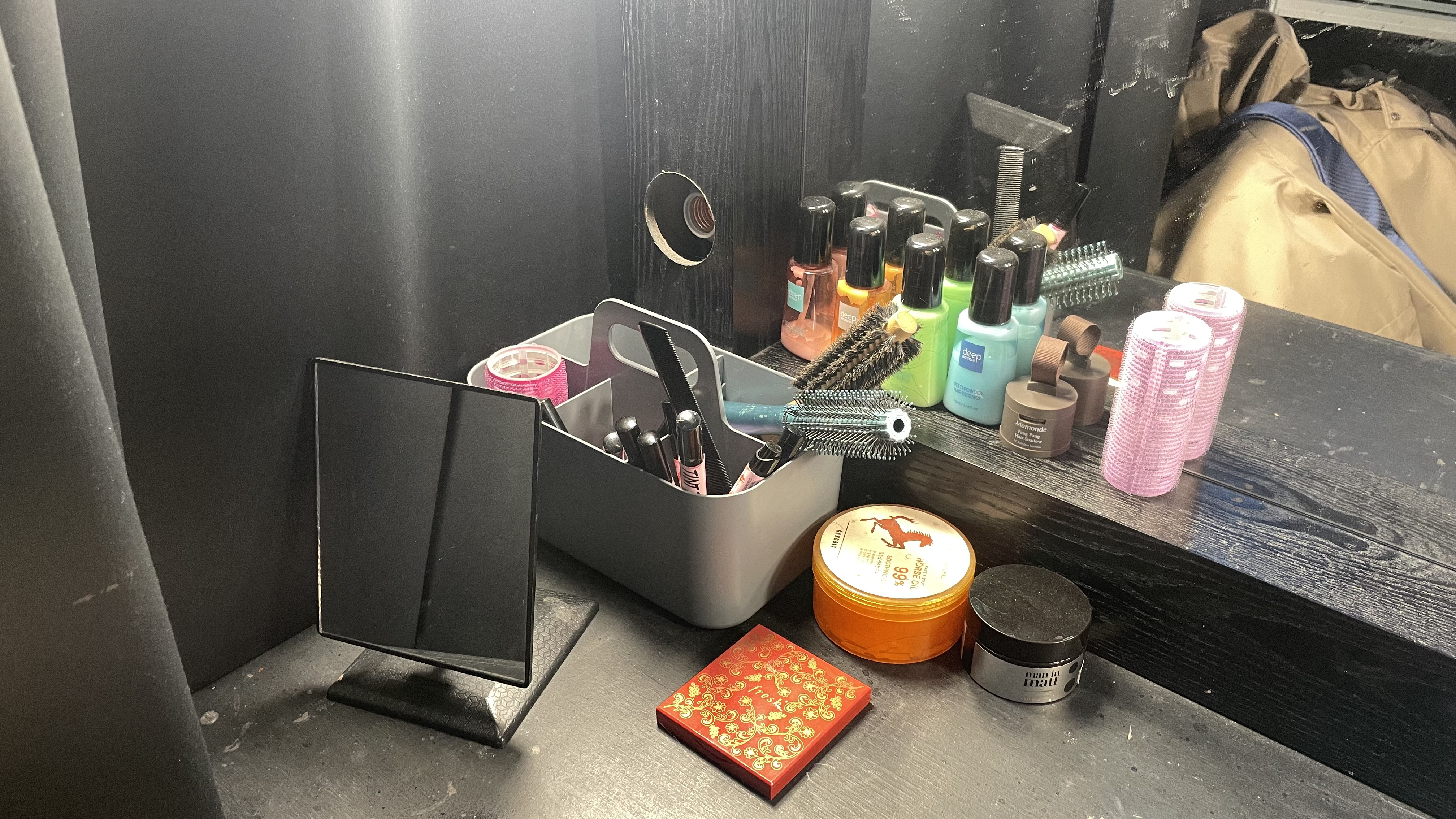 각종 소품들과 함께 'FITTING ROOM'과 메이크업 테이블이 있다.