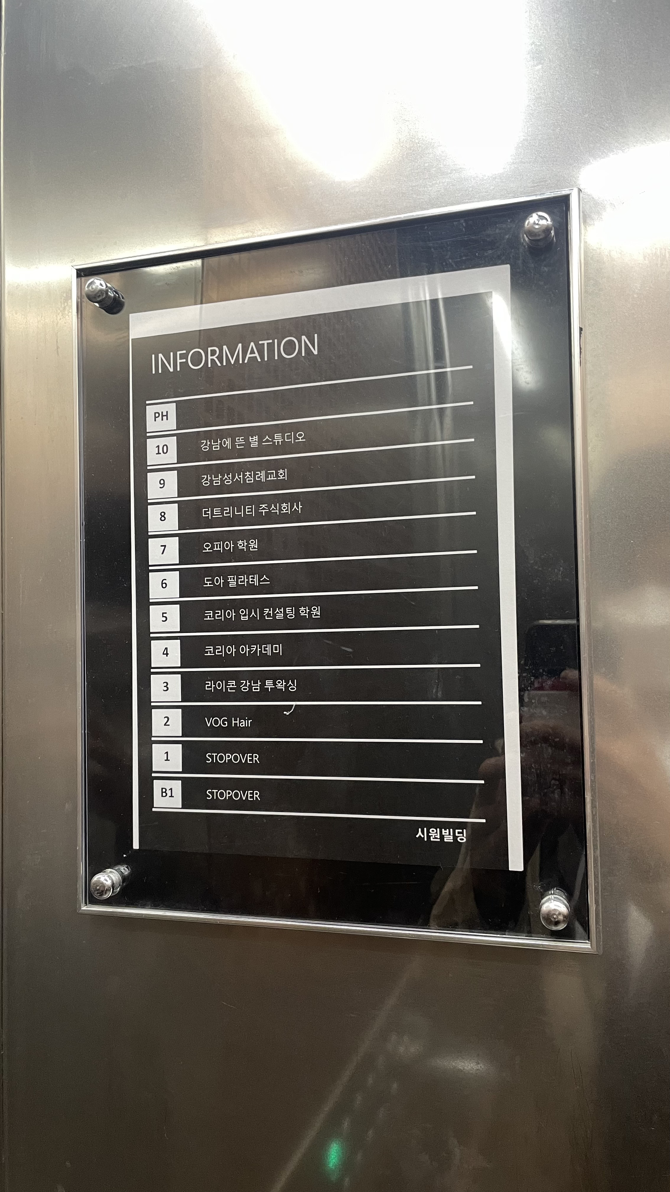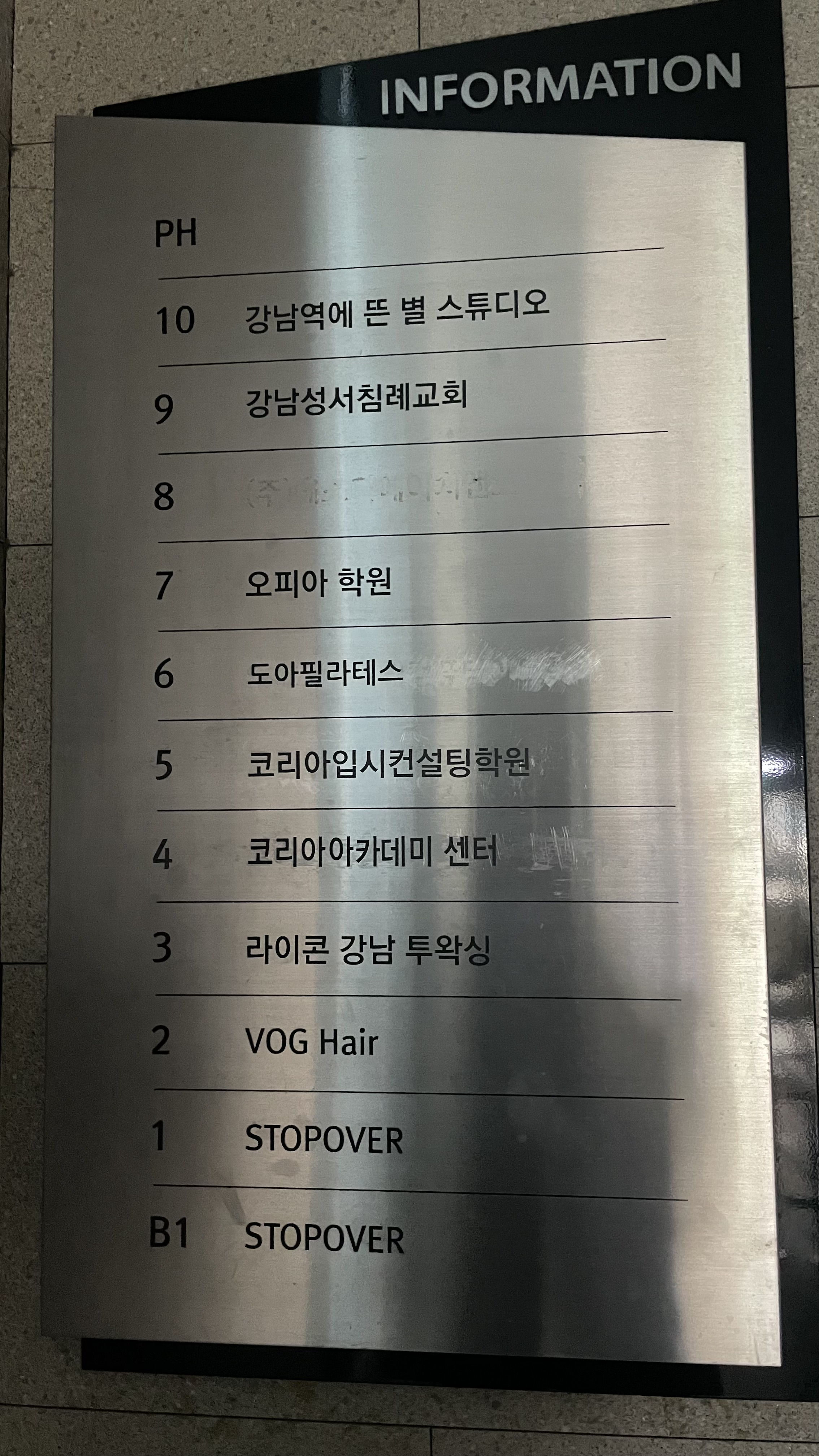1층 엘베 옆과 엘베 안을 보면 층별 안내가 있다.
