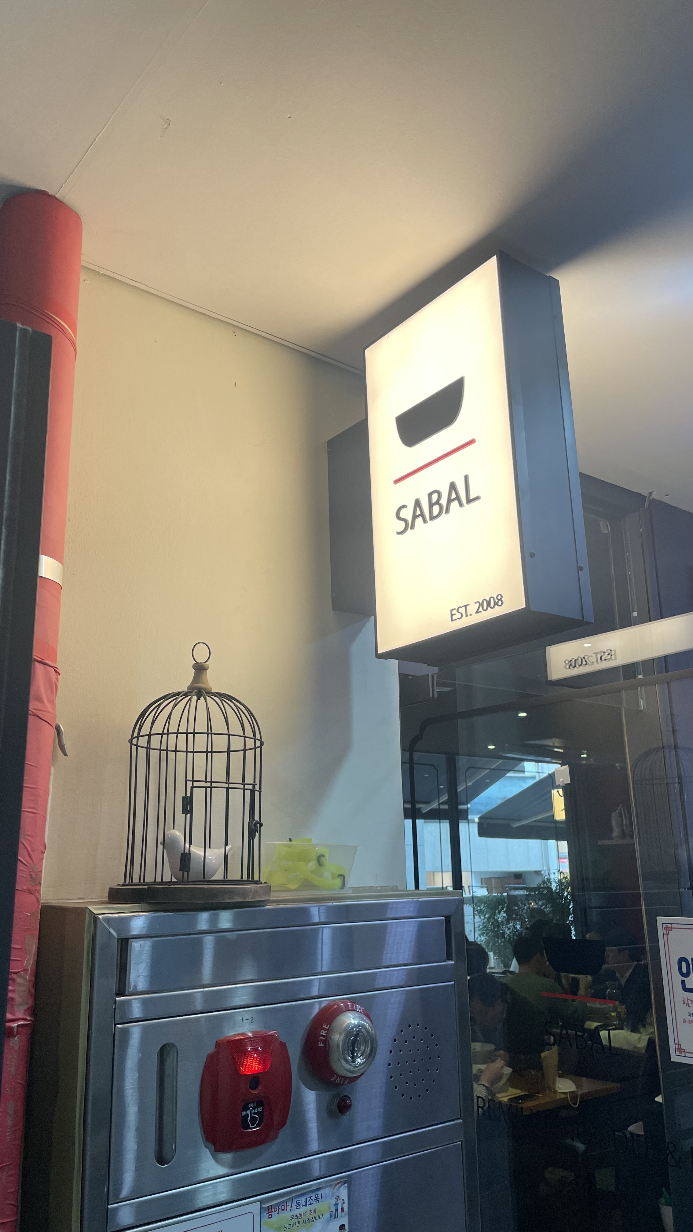 건물에서 길을 헤매고 밝으로 나올 수도 있는데, 외부 좌석에도 간판이 있기 때문에 '사발'을 찾을 수 있다.
