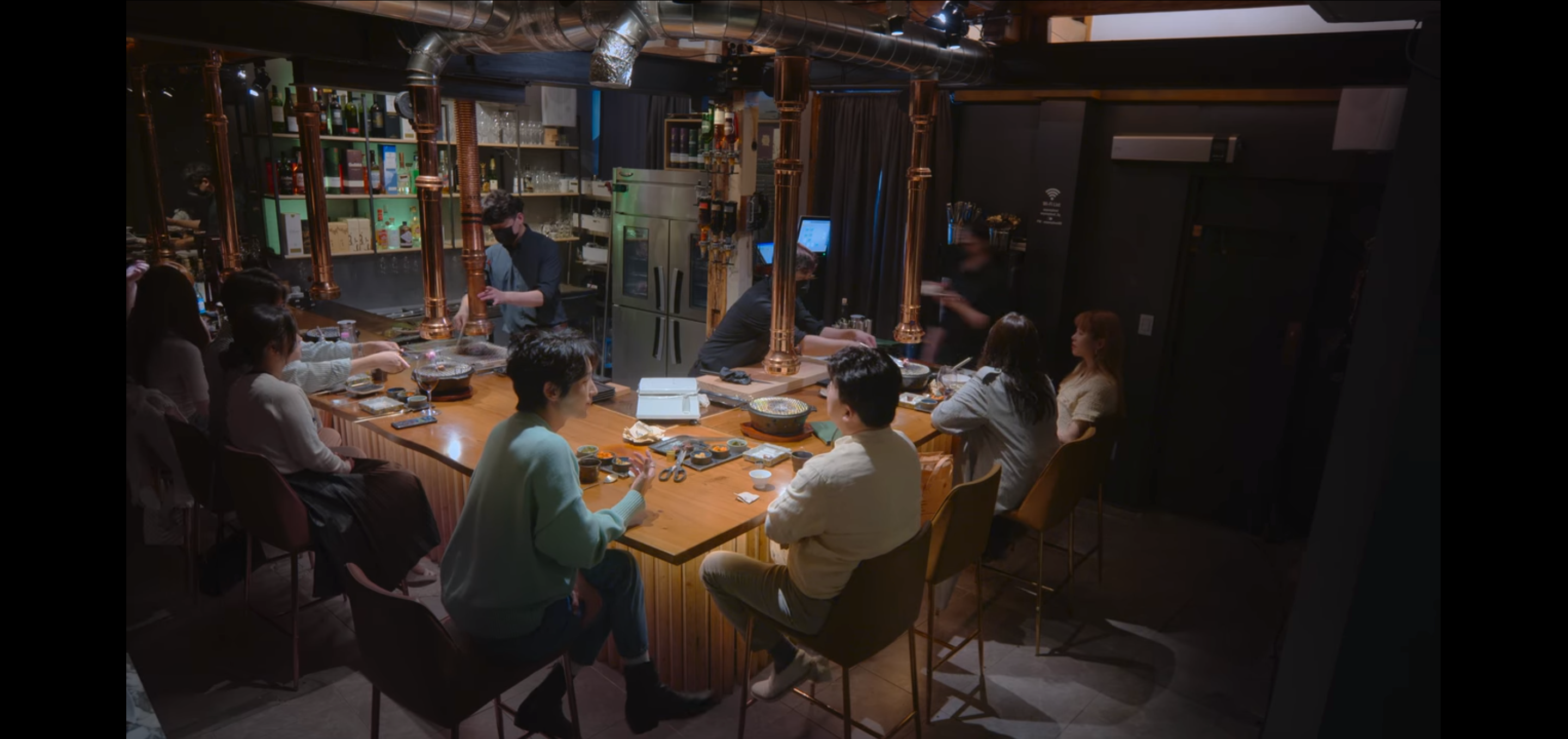 필자는 바테이블 가장 끝에 자리를 잡았다. 백종원과 이준기가 촬영한 자리는 입구에서 가장 가까운 바테이블 모서리 자리이다.